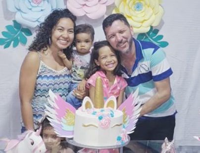 Comerciante Miriam Carvalho, ao lado do marido e filhos, está sempre comemorando feliz a chegada de nova primavera