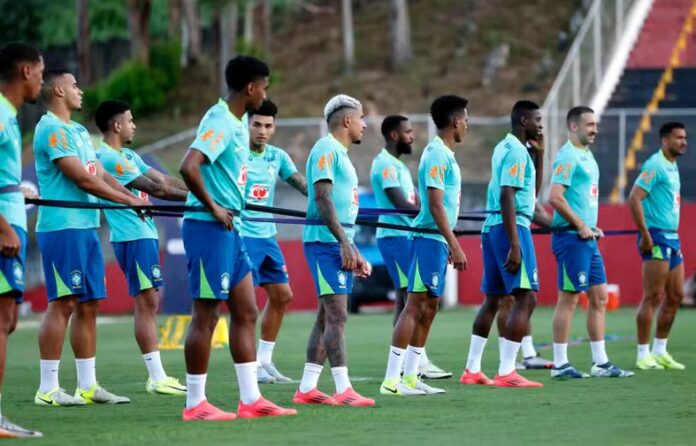 A tendência é que o Brasil entre em campo com Ederson, Danilo, Marquinhos, Gabriel Magalhães e Abner; Bruno Guimarães, Gerson e Raphinha; Vini Jr., Igor Jesus e Savinho. Dorival comandou mais um treino, segunda-feira, na Fonte Nova antes do duelo desta noite.