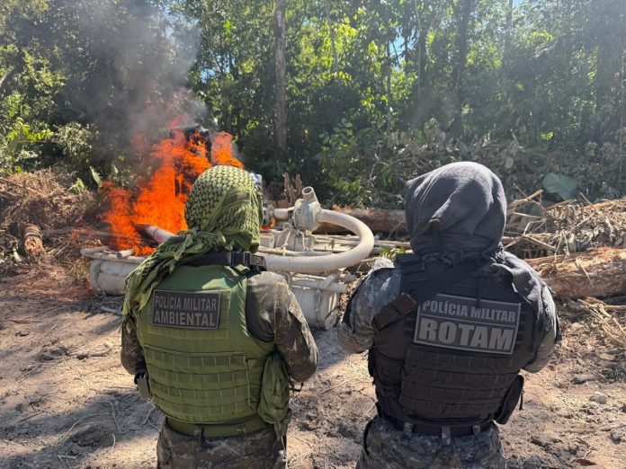 A equipe, que atuava no atendimento à demanda de fiscalização de atividades potencialmente poluidoras no âmbito da Operação Flora Hotspot 2025, deslocou-se até o ponto onde estaria ocorrendo extração ilegal de minérios.