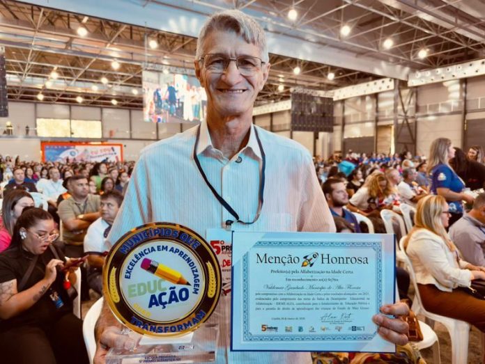 Nesta segunda-feira (23/03), o prefeito Chico Gamba está em Brasília, onde recebe o Selo Ouro nacional pelo Prêmio Criança Alfabetizada. Este é o segundo ano consecutivo em que Alta Floresta conquista o reconhecimento nacional, mantendo o alto nível de desempenho alcançado anteriormente.