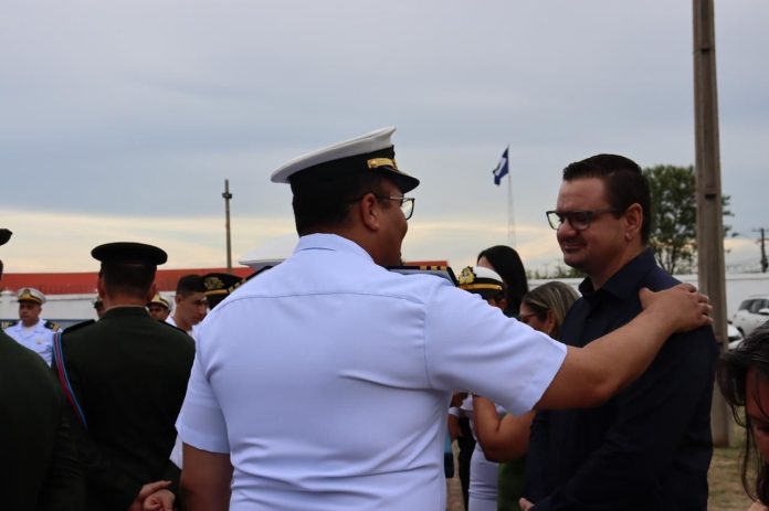 A solenidade foi presidida pelo Contra-Almirante Carlos Eduardo Horta Arentz, Comandante do 6º Distrito Naval, que ressaltou a importância estratégica da parceria construída com as lideranças regionais. Em seu pronunciamento, destacou que a dedicação e o comprometimento de Emanuel Marcos da Silva têm sido fundamentais para a consolidação e o avanço das iniciativas institucionais no município.