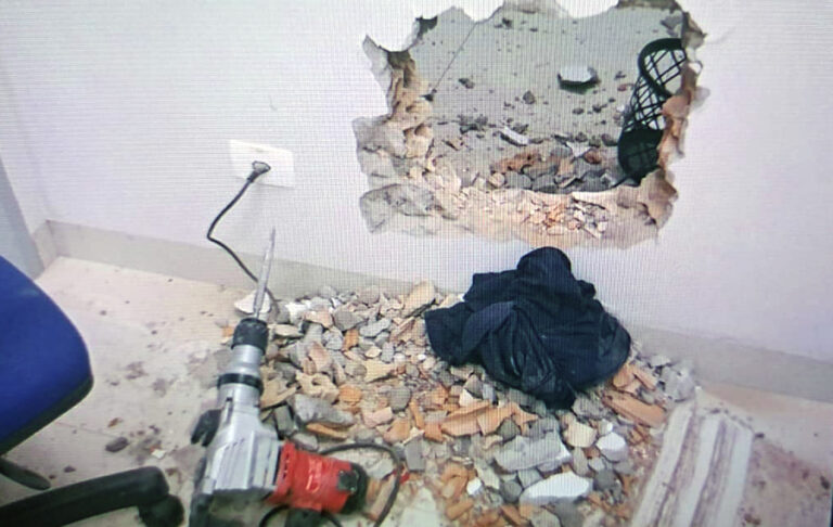 A Perícia Técnica foi acionada para os procedimentos necessários no local. Foram encontradas ferramentas próximo ao cofre, como martelete, pé de cabra, malas, mochilas, lixadeira, uma marreta, uma talhadeira, disco de lixadeira, extensão e corda.