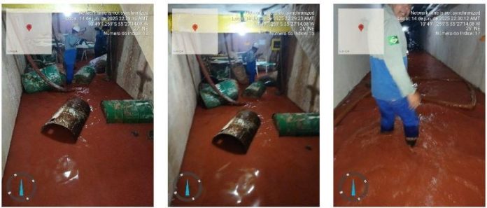 Durante vistoria realizada entre os dias 22 e 27 de agosto de 2025, foram constatadas falhas críticas no sistema de drenagem da barragem. Dos 70 drenos avaliados, 14 não possuem piezômetros e 55 estão sem peneiras para análise de turbidez, dificultando o monitoramento da pressão interna e da presença de sedimentos. Além disso, 18 drenos apresentaram carreamento de materiais, cinco romperam e três foram tamponados por segurança. A recorrência dos eventos em intervalos cada vez menores confirma a progressão da erosão interna, conhecida como piping, um dos principais mecanismos de falha em barragens de terra e enrocamento.