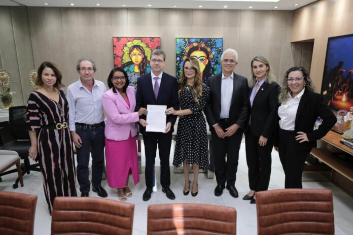 A primeira-dama de MT, Virginia Mendes, idealizadora do programa SER Família Inclusivo, recebeu na quinta-feira (01.08), no gabinete da Unidade de Ações Sociais e Atenção à Família (UNAF), o promotor de Justiça Wagner Cezar Fachone e o diretor-presidente da Unimed Cuiabá, Carlos Eduardo de Almeida Bouret, para a assinatura do Termo de Ajustamento de Conduta (TAC), com a finalidade de beneficiar os atuais usuários autistas do plano de saúde.