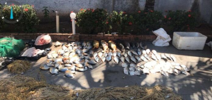 Questionados sobre o material encontrado, eles relataram ser proprietários das redes e disseram que havia quantidade de pescado dentro de um freezer. Foram encontrados 144 unidades de peixes, sendo 76 unidades de Piranha, 31 Pacupevas, 24 unidades de Piraputanga, quatro unidades de Curimbatá, três unidades de Piavuçu e três da espécie Dourado, um Pintado e um Pacú. Também foram encontrados 33 quilos de carne de jacaré.