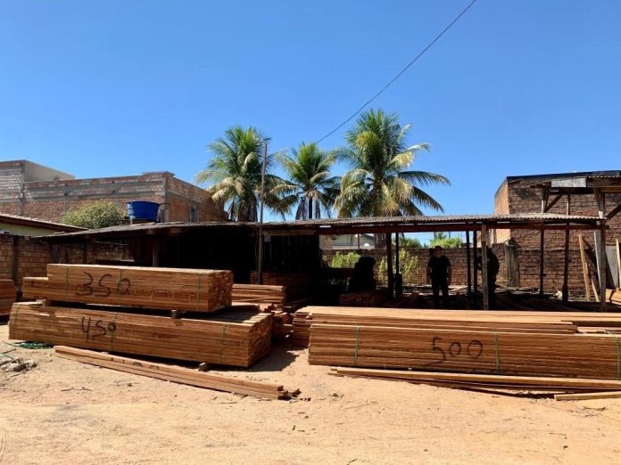 Durante a ação, foram vistoriados três depósitos de madeira localizados na área urbana de Peixoto de Azevedo. Em todos os pontos fiscalizados, constatou-se o armazenamento de grandes quantidades de madeira serrada da espécie protegida, sem qualquer documentação ambiental que comprovasse a legalidade da origem e do transporte do material.