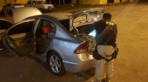 Dois suspeitos, que tentaram furar bloqueio da PRF e reagiram a tiros quanto foi tentada a abordagem, acabaram morrendo. Um veículo Civic, procedente de roubo/furto, que ocupavam, estava abarrotado de droga. Segundo levantou a Polícia Rodoviária Federal, o volume apontou cerca de 840 quilos do entorpecente, além de duas espingardas calibre 12, um revólver calibre 38 e uma faca.