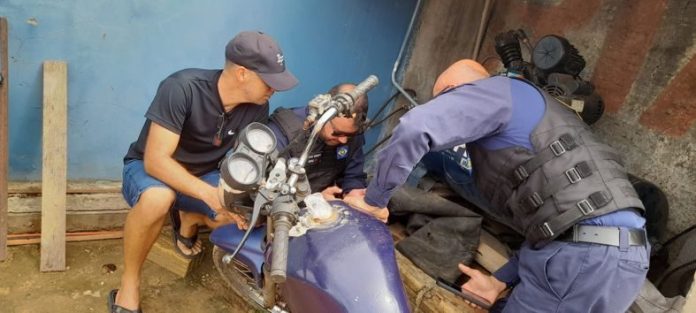 Alta Floresta – Uma moto CG-150 Honda, cor azul, ano 2004 modelo 2005 foi recuperada no município de Alta Floresta na manhã desta sexta-feira, cinco meses após ter sido furtada no ano passado. O veículo foi subtraído conforme registro de ocorrência, no dia 16 de outubro de 2024. Estava estacionado no pátio do complexo esportivo municipal.