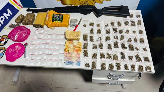 Alta Floresta – Um jovem de 21 anos foi preso no município de Alta Floresta, acusado de tráfico de drogas. Muita maconha, pasta base, cocaína, skank (super maconha), dinheiro e balança de precisão, além de uma espingarda de pressão foram apreendidas pela equipe policial.