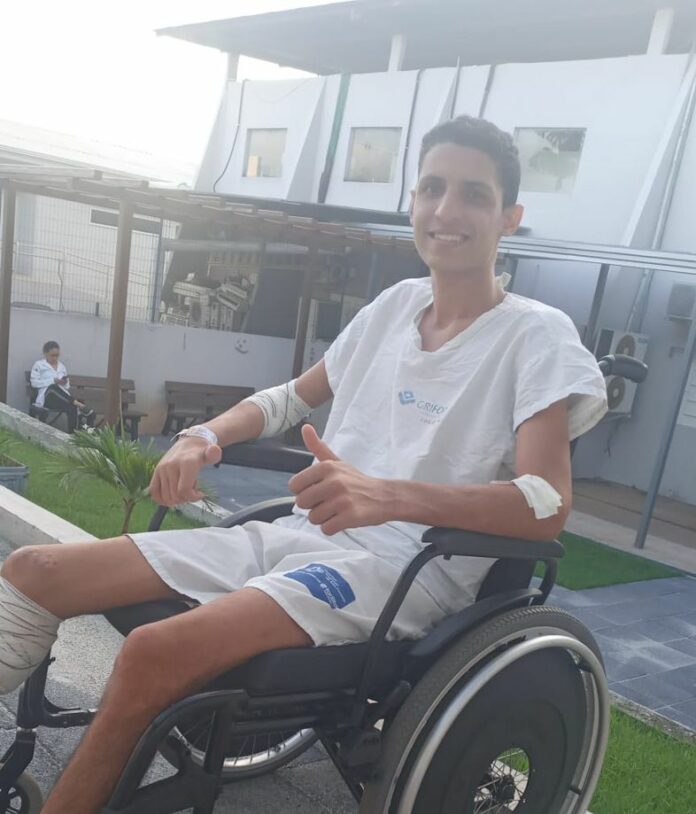 O choque foi muito violento e Gabriel arremessado. Sua motocicleta pegou fogo. Já o jovem ficou caído ao solo, cheio de sangue, com fraturas pelo corpo. Quebrou bacia, furou bexiga, quebrou costelas, braço e a perna do joelho para baixo ficou dilacerada. “Quem viu meu filho naquela situação aquele dia e o vê hoje, mesmo estando assim, fica de queixo caído”, conta a mãe Aparecida Caetano que no dia recebeu a notícia assim que retornou de um culto. “Meu outro filho me deu a notícia e ficamos em desespero. Ouvimos de uma médica que meu filho não estaria vivo no outro dia. Mas oramos, acreditamos e hoje só podemos dizer que ele é um milagre de Deus e só temos a agradecer”, testemunhou a genitora.