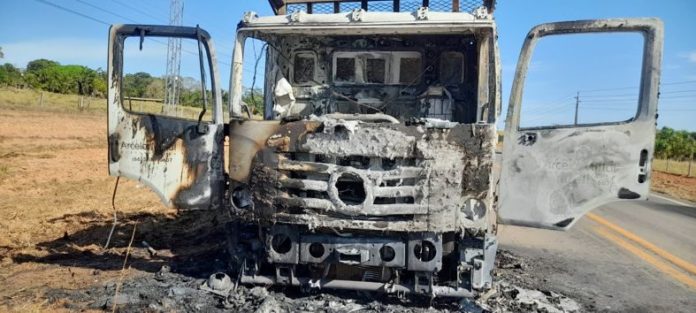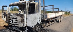 NÃO TEVE FERIDOS: Fogo destrói caminhão pós estouro de pneu na MT-208 em AF