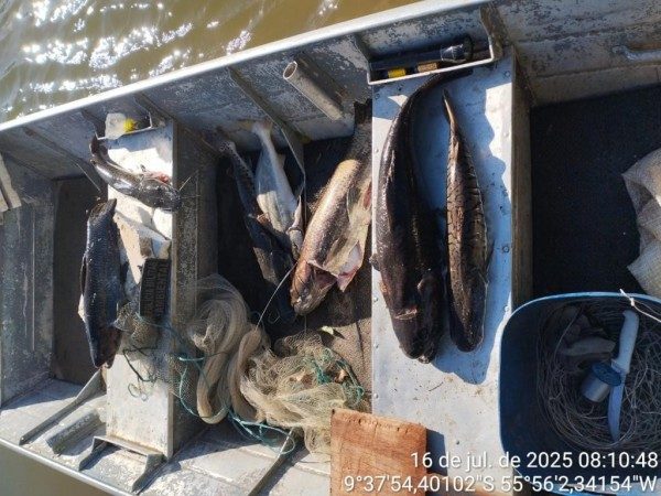 Os fiscais durante ação no Teles Pires disseram que chegaram até uma ilha onde havia uma embarcação ancorada e que ao fazerem uma vistoria, encontraram sete peixes. Depois seguiram até um acampamento onde estava o pescador profissional e o filho dele, um menor de 15 anos.