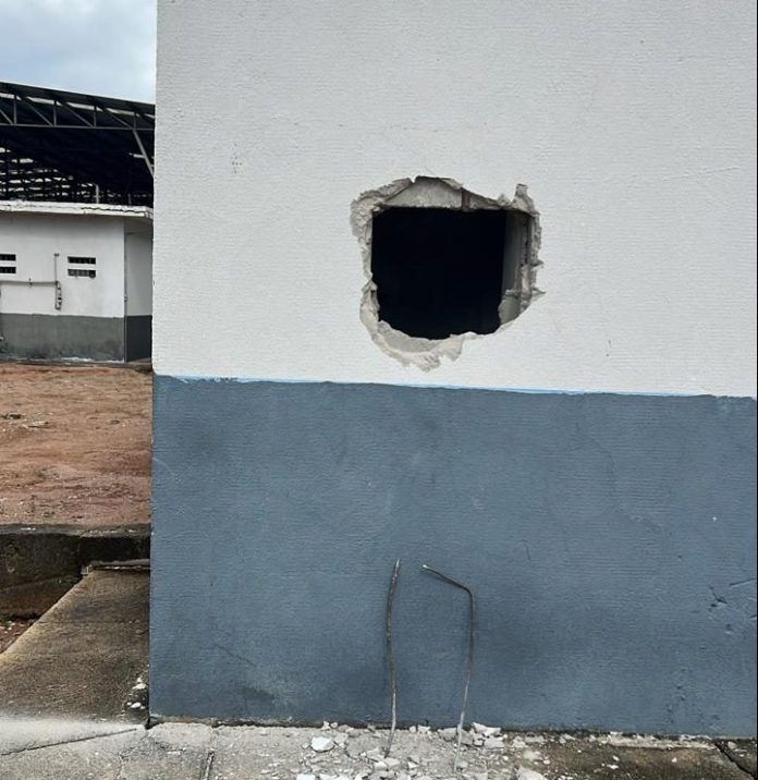 Três presos tentaram fugir. Mas, segundo a direção da unidade, ao ver que o alambrado havia passado por uma reforma e que não conseguiriam completar a fuga, o trio retornou para o banheiro pelo buraco que fizeram.