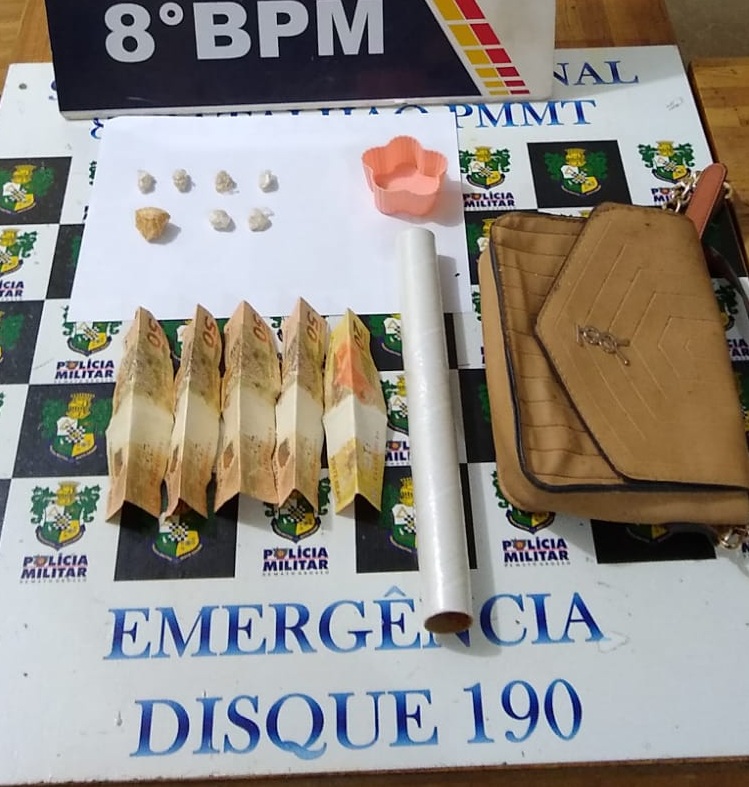 No carro não tinha nada, mas no bolso da camisa do suspeito foi encontrada uma porção de pasta base segundo a PM. Uma mulher estava no banco do motorista e na bolsa dela foram encontradas mais cinco porções do mesmo entorpecente, além de um caderno de anotações. A PM informou que o material terá como validade de comprovação do tráfico já que aponta contabilidades da venda de droga, inclusive com muitos nomes e valores.