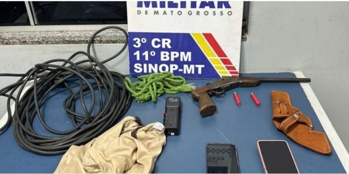 Durante cerco policial aos suspeitos em fuga, um deles apontou uma arma de fogo contra a guarnição, que revidou. “Ali foi localizada uma pessoa. Na sequência, também foi encontrada mais uma pessoa que veio a reagir à prisão, foi alvejada e ele foi conduzido rapidamente ao hospital regional, mas veio a óbito”, acrescentou. Com ele foram apreendidos uma garrucha calibre .36, munições e celulares das vítimas.