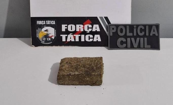 Com base nas informações, os policiais identificaram o veículo e iniciaram o seu monitoramento, até o momento em que o carro estacionou em um posto de combustível, na BR-163. Ao perceberem que o suspeito se manteve dentro do veículo, os policiais decidiram realizar a abordagem, sendo encontrado dentro do carro, uma porção grande de maconha, embalada para venda.
