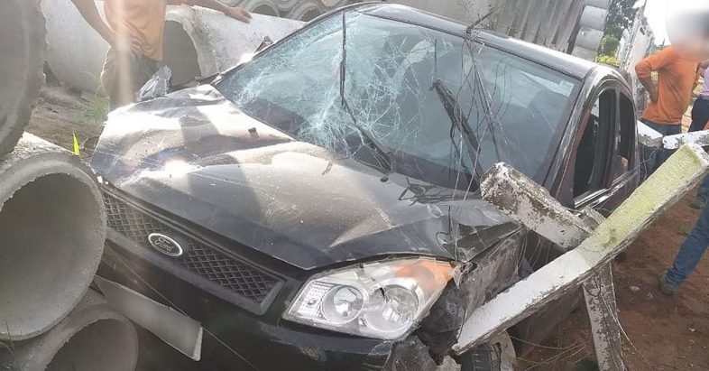 Informações obtidas são que o veículo, um Fiesta Sedan, preto, ano 2009/10, com placas de Alta Floresta, trafegava pela rodovia sentido Paranaíta/Alta Floresta quando saiu da pista e atingiu manilhas de concreto que estavam ao lado da rodovia.