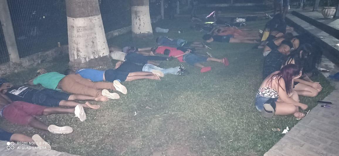 Alta Floresta/MT – A Polícia Militar na noite de sábado no município de Alta Floresta foi acionada para atender uma denúncia de aglomeração em uma chácara na primeira Vicinal Leste. Várias viaturas foram mobilizadas e no local a constatação de uma festa regada dos mais variados tipos de bebida alcoólica, cigarro, narguilé e jovens curtindo animados pelo som alto, piscina e droga.