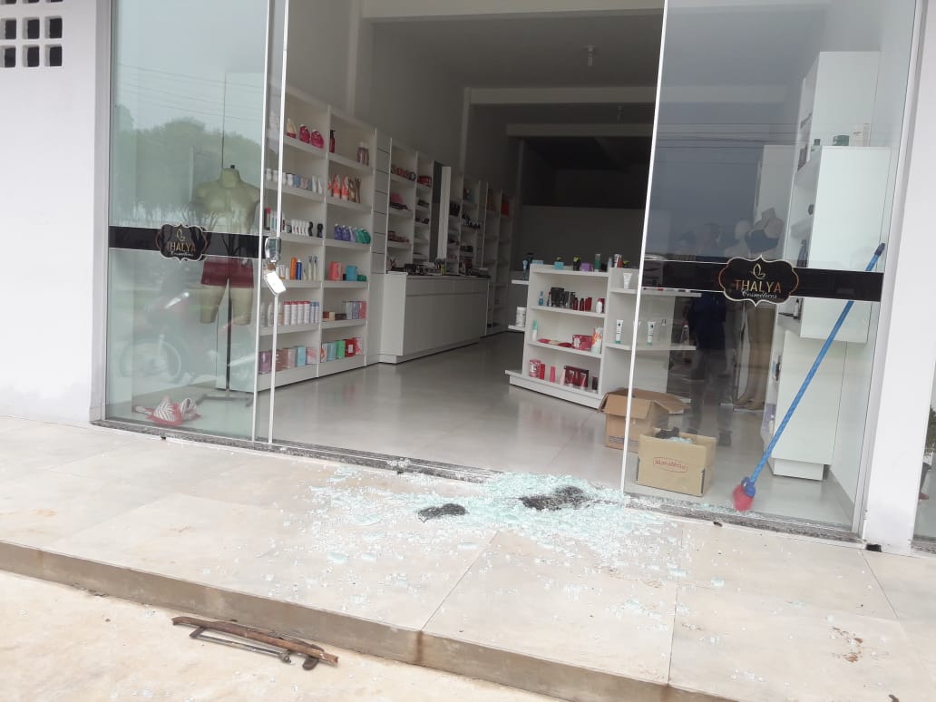 A lojista enquanto o marido prestava queixa ficou no local tentando arrumar a bagunça e somar o prejuízo. “Ainda é difícil falar exatamente quanto, mas só os produtos são mais de R$ 3 mil, mas tem a porta também”, comentou Talya, frustrada com a situação. “Acho que não pegaram mais porque uma pessoa passou no momento e viu que tinha gente dentro da loja e a porta tinha sido estourada”, complementou.