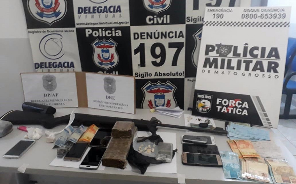 Alta Floresta/MT – Cocaína pura, maconha, pasta base, balança de precisão, arma de fogo e quatro pessoas presas. Esse é o resultado de mais uma ação conjunta das Polícias Civil e Militar de Alta Floresta. O alvo inicial era apenas uma residência no bairro Vila Rica, mas no decorrer da operação se estendeu para o bairro Vila Nova.