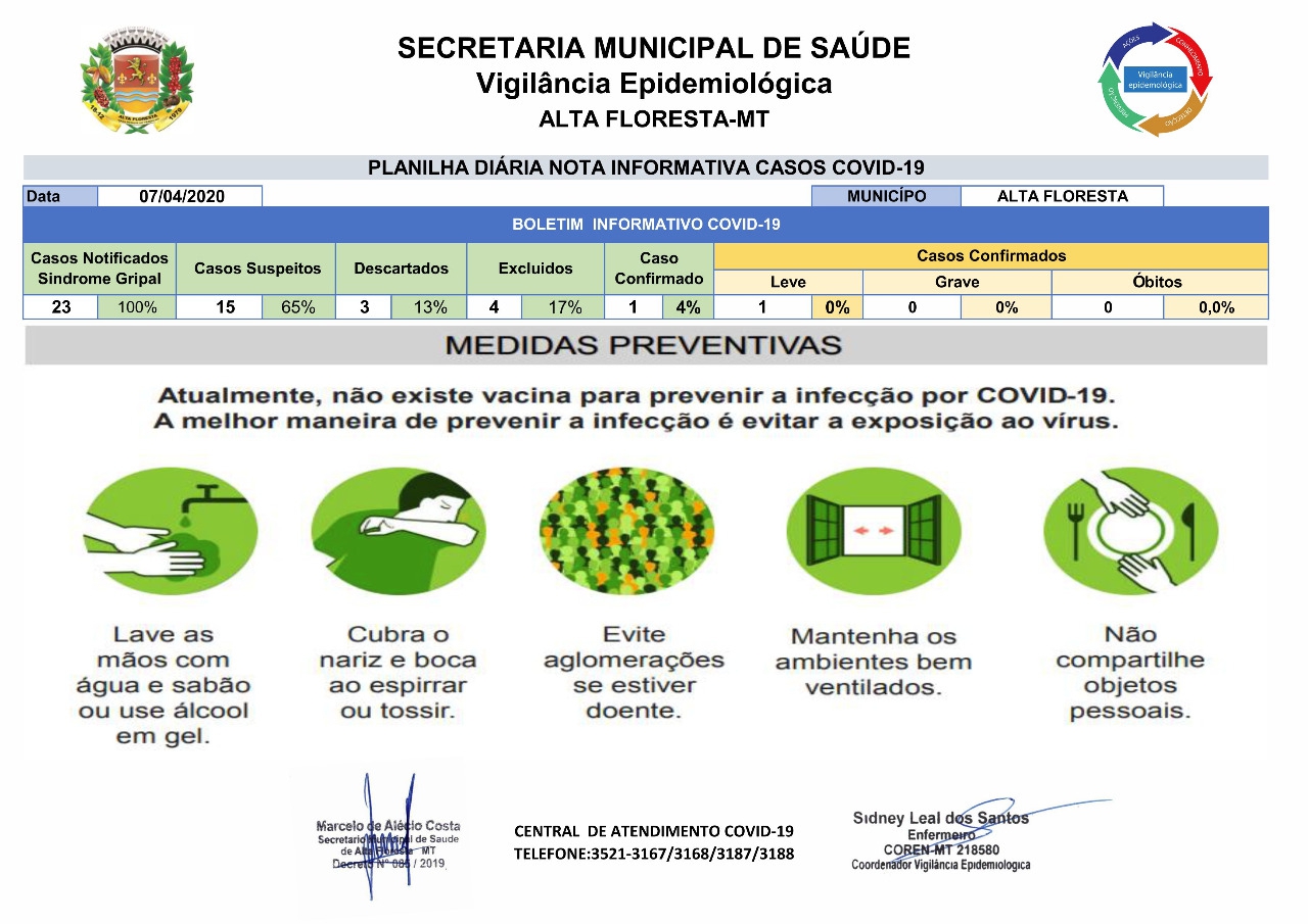 Nesta quarta-feira pela manhã a Central de Monitoramento se mostrava otimista quanto aos casos notificados. Segundo Sidney Leal, na terça-feira eram 23 casos síndrome gripal, 15 desses suspeitos de serem coronavírus, 4 descartados e três excluídos. Mas três exames que estavam em análise saíram o resultado e negativo. Novos casos suspeitos no entanto apareceram, mas o município de Alta Floresta se mantinha estagnado com apenas um caso confirmado e redução para 14 suspeitos. “Aguardar que até as 19 horas não apareçam mais ou se aparecerem que sejam exames negativos”, torcia o servidor nesta quarta-feira.