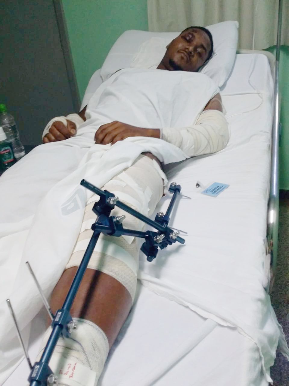 Breno na época ficou caído no asfalto, reclamando de dores em várias partes do corpo, principalmente em membros inferiores. “Quebrou a perna em três parte”, disse a avó Cleusa lembrando que o neto precisará por bom tempo usar aparelho fixador. “Quebrou também o pulso”, informou.