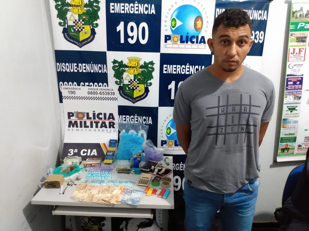 O trabalho da PM iniciou em uma abordagem na região central de Colíder onde o jovem Rafael Gross foi visto em atitude suspeita. Os militares que faziam rondas ostensivas fizeram uma busca pessoal no cidadão e na ocasião segundo Boletim de Ocorrência, já encontraram oito pinos de cocaína, um cigarro de maconha e mais uma pequena porção de maconha.