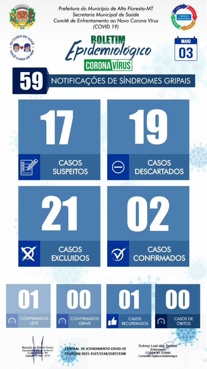 Antes do novo caso ser diagnosticado no início do final de semana, Alta Floresta se mantinha como apenas um caso confirmado e recuperado e na ocasião, reduzia os casos suspeitos. Eram apenas sete na sexta-feira até chegar no final do dia a confirmação do teste positivo do operador de caixa que mora com a madrasta e com o pai. “Estava seguindo sem aumento de casos suspeitos, mas dizíamos também que era sempre bom as pessoas tomarem todas as precauções, pois o vírus poderia estar circulando em Alta Floresta e isso é o que muita gente ainda não se deu conta ou não levou a sério e fica fazendo festa, em aglomerações, entre outros eventos, sem usar máscara ou gel, como se nada tivesse ocorrendo”, finalizou.
