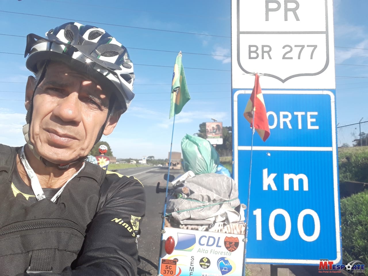 No seu quarto desafio pelo Brasil afora, o ciclista altaflorestense José Messias (64 anos) já percorreu 2.278 kms, entre os estados do Paraná, Rio Grande do Sul e Santa Catarina.