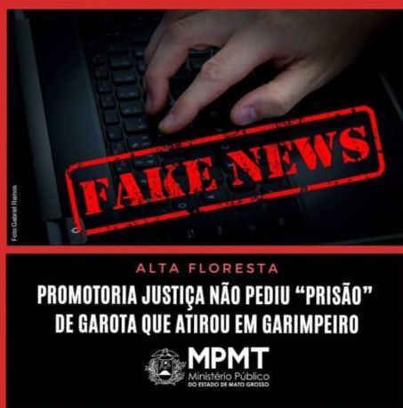 Alta Floresta/MT – Um caso registrado pela Polícia Militar de Alta Floresta como tentativa de homicídio onde uma adolescente de 12 anos atirou em um garimpeiro, repercute nas redes sociais. Além das matérias veiculadas em portais o assunto virou alvo de fake News ou notícia falsa compartilhada por muitas pessoas após publicação fita em uma página temporária, dizendo que a promotoria de Justiça tinha mandado prender a menor.