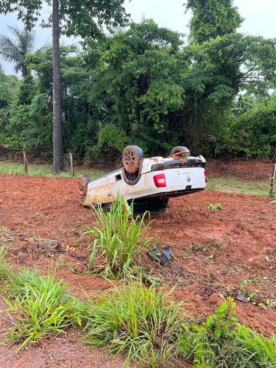 Alta Floresta – Na manhã desta segunda-feira foi registrado um acidente na Rodovia MT—208, sentido Alta Floresta à Nova Bandeirantes. Um policial militar estava sozinho em uma pick-up Saveiro quando numa curva a cerca de 20 quilômetros do núcleo urbano alta-florestense, o carro saiu da pista, capotou e ficou de pneus para cima.