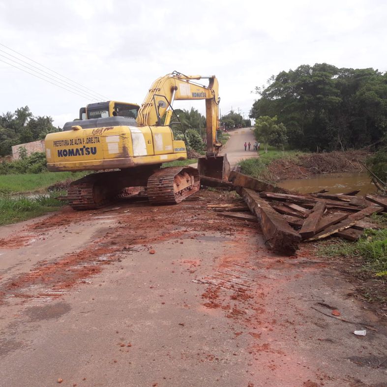 O lançamento da obra aconteceu no dia 27 de fevereiro. Nesta segunda-feira, 11 de março, a máquina da prefeitura retirou o madeiramento da antiga estrutura, fez uma limpeza da vegetação das duas cabeceiras e laterais. Os funcionários da Secretaria de Obras ainda cercaram os dois lados da via com vários cavaletes informando que a via está fechada temporariamente.