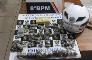 Na residência do infrator a mãe foi informada da abordagem e conforme a PM, autorizou entrada dos policiais para averiguação. Foi quando no quarto do rapaz, em uma mochila preta, foram encontradas mais 13 porções de maconha, uma porção de pasta base de cocaína, uma balança de precisão e R$ 320.