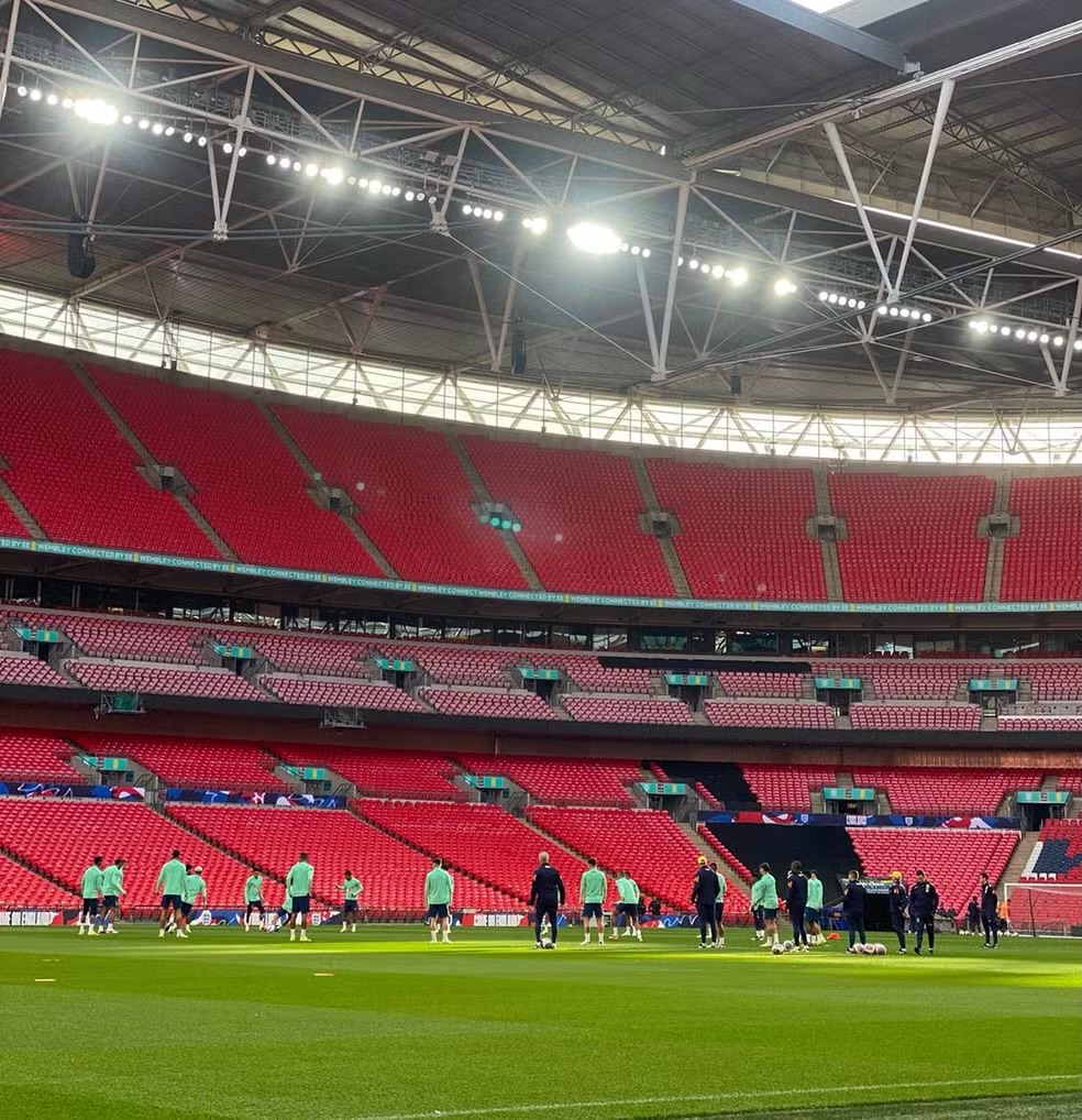 A Seleção Brasileira comandada por Dorival Júnior fez o reconhecimento do gramado de Wembley ontem durante a tarde na Inglaterra. O lendário estádio inglês será o palco do amistoso entre Inglaterra e Brasil hoje.