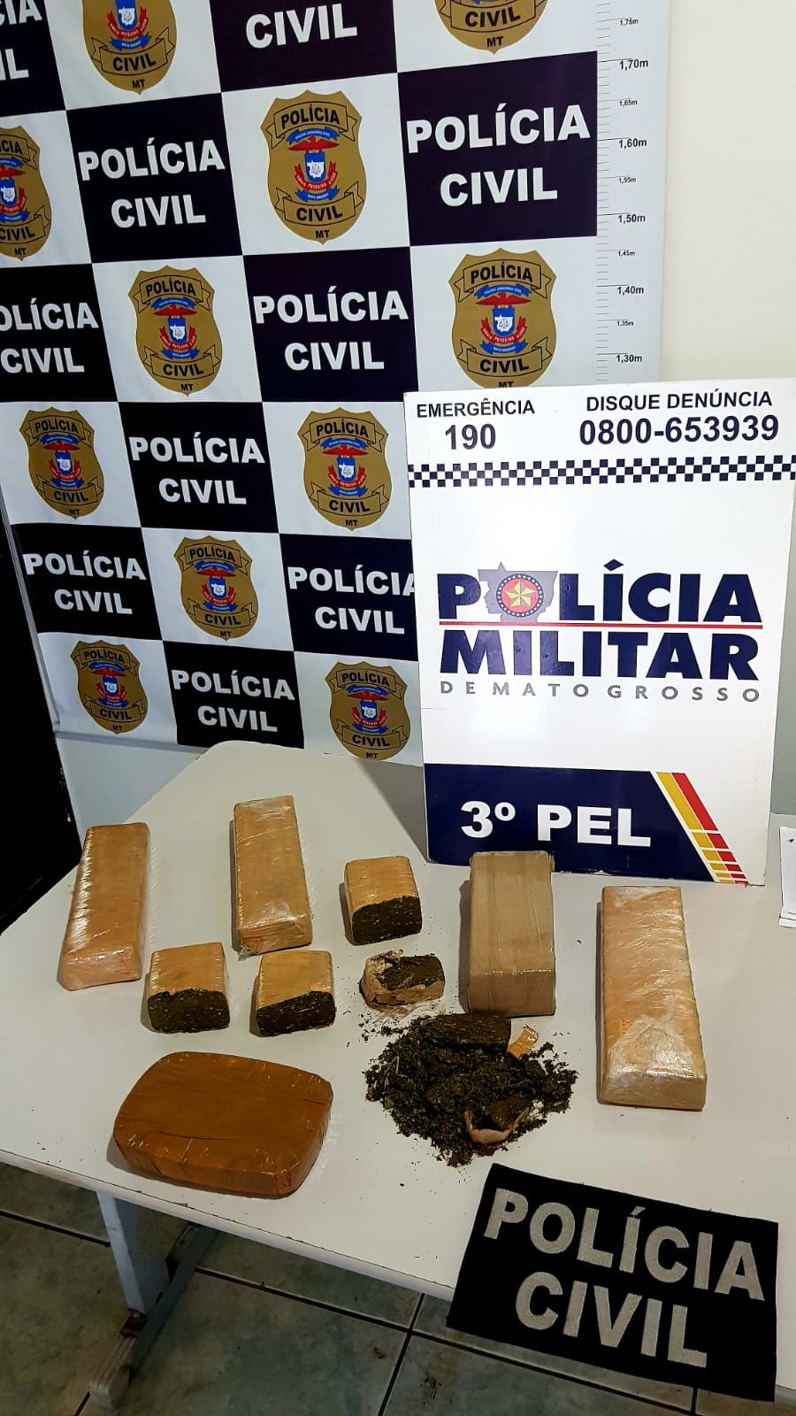 Com ele foram encontrados quatro grandes tabletes de maconha, três pedaços menores e uma grande porção da mesma droga, além de um tablete com a pasta base de cocaína. “era droga que certamente seria distribuída em Apiacás”, comentou o investigador.