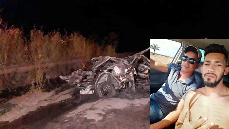 Carro bateu, pegou fogo e matou dois. Uma vítima ficou carbonizada