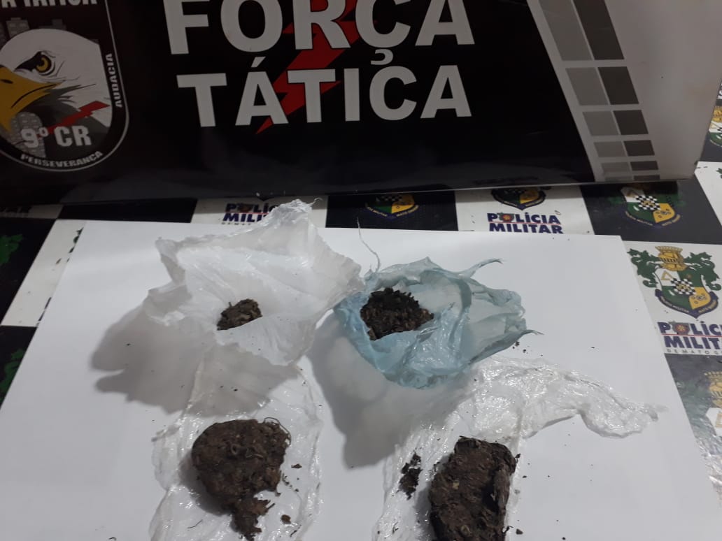 Dois suspeitos ainda conseguiram fugir, mas PM apreendeu entorpecente