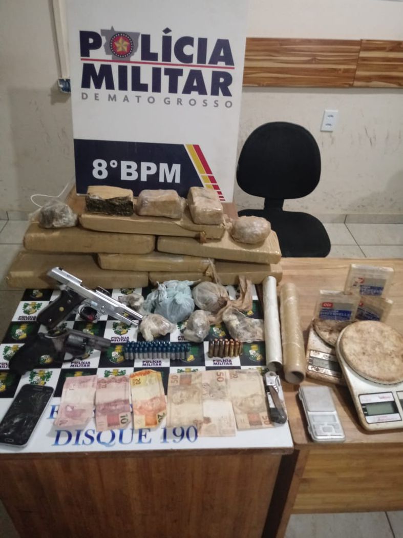 Alta Floresta/MT – Um elemento de 21 anos, que seria ligado ao Comando Vermelho foi preso essa semana no município de Alta Floresta, acusado de tráfico de drogas. O suspeito relatou à PM que foi batizado pelo CV e depois designado para comercializar entorpecente no município onde fora encontrado com mais de 10 quilos de maconha, porções de pasta base, munições, além de um revolver calibre 38 e uma pistola 9 MM.