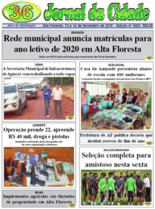 Edições do Jornal Edição 4003 14 de novembro de 2019 Compartilhe: FacebookTwitterPinterestWhatsApp Edição 4003 Artigo anteriorAtaques políticosPróximo artigoO sorriso é a melhor forma de começar o dia, palavras da bióloga Ketlen Paes Alta Floresta nublado enter location 28.4 ° C 28.4 ° 28.4 ° 85 % 0.4kmh 95 % sex 27 ° sáb 28 ° dom 26 ° seg 23 ° ter 27 ° Últimas notícias NORTÃO SEGURO: Três suspeitos de Carlinda são presos na cidade de Matupá Polícia DIREITOS DO CONSUMIDOR: Procon Estadual fiscaliza supermercados e lojas de produtos agropecuários em municípios do interior Geral SÉRIE D: Equipes de Mato Grosso não vencem pela segunda rodada Esporte ACOSTUMADO A ROUBAR: Ladrão é preso pela Polícia Civil após arrombar lojas em Apiacás Destaques Ataques na capital – II Papo de Esquina Artigos relacionados Destaques EM VÁRZEA GRANDE: Polícia Civil localiza depósito de entorpecentes em mata Assessoria | Polícia Civil-MT Uma grande quantidade de entorpecente que estava ocultada em uma área de mata, na região... Polícia NORTÃO SEGURO: Três suspeitos de Carlinda são presos na cidade de Matupá Por Arão Leite Alta Floresta – Um jovem de 23 anos, sua namorada, de 19 anos e mais uma... Geral DIREITOS DO CONSUMIDOR: Procon Estadual fiscaliza supermercados e lojas de produtos agropecuários em municípios do interior Solange Wollenhaupt Procon/Setasc-MT A Secretaria Adjunta de Proteção e Defesa dos Direitos do Consumidor (Procon-MT), órgão vinculado à Secretaria de... Esporte SÉRIE D: Equipes de Mato Grosso não vencem pela segunda rodada Gustavo Sampaio Jornal da Cidade A Série D de 2026 tem participação recorde das equipes de Mato Grosso, graças as...
