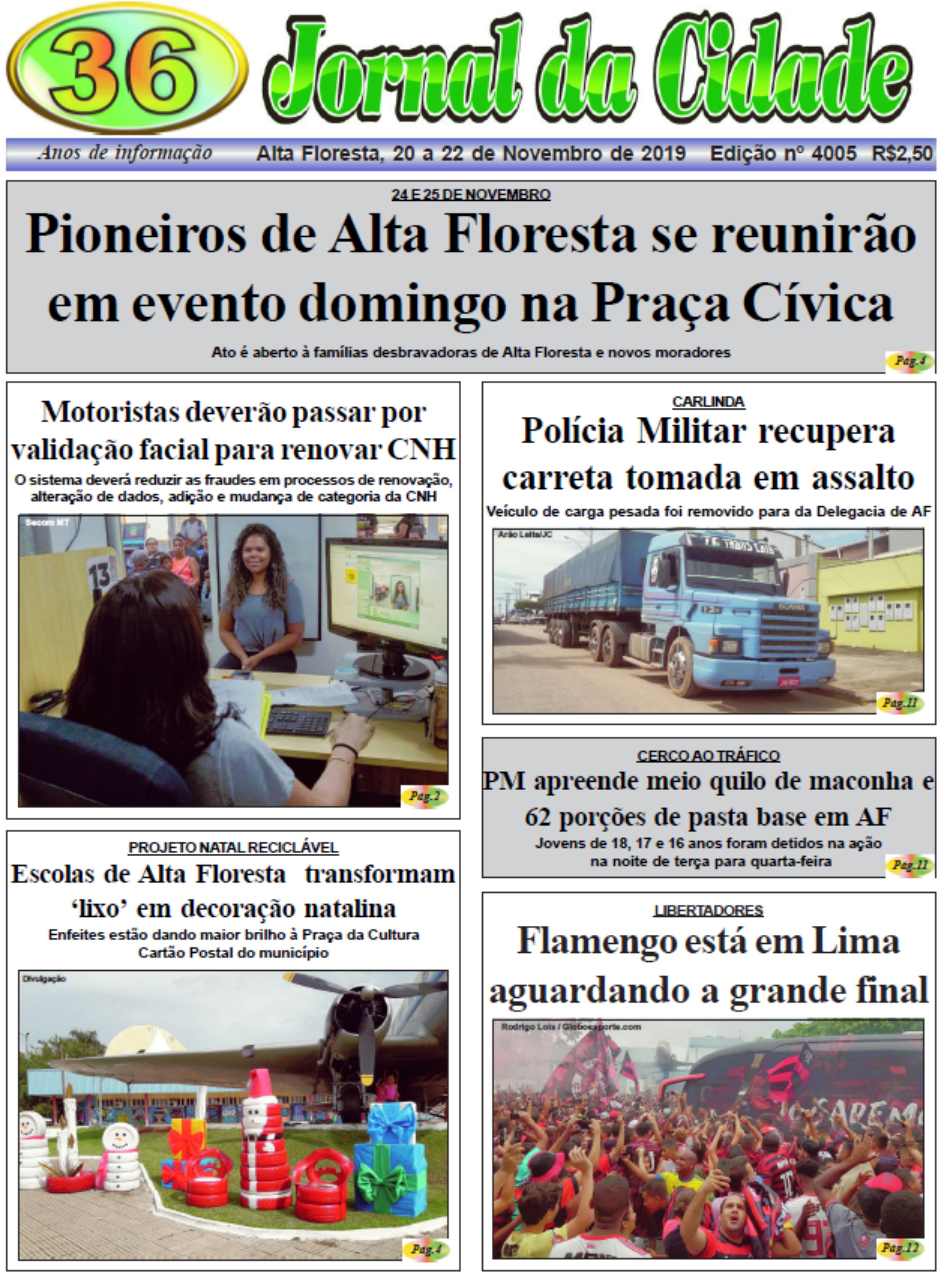 Edições do Jornal Edição 4005 22 de novembro de 2019 Compartilhe: FacebookTwitterPinterestWhatsApp Edição 4005 Artigo anteriorA linda Karoline Oliveira Petrofeza completou 15 anos e comemorou em grande estilo ao lado da família e amigosPróximo artigoMIRANTE DO LAGO: PM encontra droga enterrada e prende casal em Alta Floresta Alta Floresta nublado enter location 22 ° C 22 ° 22 ° 98 % 0.7kmh 96 % sáb 29 ° dom 24 ° seg 28 ° ter 29 ° qua 29 ° Últimas notícias QUASE TRAGÉDIA EM NOVA BANDEIRANTES: Tiro acidental atinge filha de homem que fazia manutenção em arma Polícia Amanda, linda Social Beatriz, se destaca em nossa coluna social com sorriso lindo Social INTEGRANTE DE FACÇÃO: Menor é detido com maconha, pasta base e cocaína em Alta Floresta Polícia Erisvania, uma excelente maquiadora Social Artigos relacionados Geral MODELO DE GESTÃO: Mais 15 escolas aprovam conversão para gestão cívico-militar e Rede Estadual passa a contar com 223 unidades em MT Laís Soares | Seduc-MT A Rede Estadual de Ensino de Mato Grosso agora passa a contar com 223 escolas... Polícia QUASE TRAGÉDIA EM NOVA BANDEIRANTES: Tiro acidental atinge filha de homem que fazia manutenção em arma Por Arão Leite Alta Floresta – A Polícia Civil apura um caso de disparo acidental que quase termina em... Social Amanda, linda Social Beatriz, se destaca em nossa coluna social com sorriso lindo
