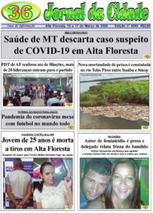 Edições do Jornal Edição 4049 17 de março de 2020 Compartilhe: FacebookTwitterPinterestWhatsApp Edição 4049 Artigo anteriorSEM CORONAVIRUS: Saúde de MT descarta caso suspeito de COVID-19 em Alta FlorestaPróximo artigoPDT de AF realizou ato de filiações, mais de 20 lideranças entram para o partido Alta Floresta nuvens quebradas enter location 22.5 ° C 22.5 ° 22.5 ° 96 % 1.3kmh 69 % qui 34 ° sex 29 ° sáb 28 ° dom 28 ° seg 24 ° Últimas notícias HOMEM QUE CAIU DE EMBARCAÇÃO: Bombeiros cessam buscas por turista desaparecido no Rio Juruena Polícia SÉRIE B: Cuiabá vence a primeira e sai do Z-4 Esporte PEDIRÁ VOTOS PARA EX-GOVERNADOR: Alckmin será cabo eleitoral de Taques na disputa ao Senado e agenda visita a MT Geral ACIDENTE DE TRABALHO: Homem cai de andaime e vai parar na UTI em AF Polícia SEM CITAR NOMES: Pivetta volta acusar senador de ‘negociata’ com prefeituras Geral Artigos relacionados Destaques NA ONDA BOLSONARISTA: Mauro diz que Flávio Bolsonaro é herdeiro da direita e sinaliza apoio Pablo Rodrigo Gazeta Digital O ex-governador Mauro Mendes (União) classificou o senador Flávio Bolsonaro (PL-RJ), como o ‘herdeiro’ da direita... Polícia HOMEM QUE CAIU DE EMBARCAÇÃO: Bombeiros cessam buscas por turista desaparecido no Rio Juruena Por Arão Leite Alta Floresta – Foram cessadas por parte do Corpo de Bombeiros, as buscas ao turista Marcelo... Esporte SÉRIE B: Cuiabá vence a primeira e sai do Z-4 Gustavo Sampaio Jornal da Cidade O Dourado venceu sua primeira partida na Série B 2026. O triunfo veio contra o... Geral PEDIRÁ VOTOS PARA EX-GOVERNADOR: Alckmin será cabo eleitoral de Taques na disputa ao Senado e agenda visita a MT Fred Moraes Gazeta Digital Vice-presidente da República e uma das principais lideranças nacionais do Partido Socialista Brasileiro (PSB), Geraldo Alckmin...
