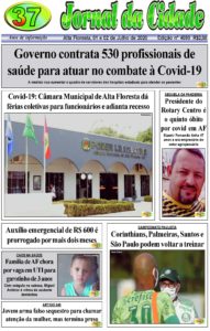 Edições do Jornal Edição 4090 2 de julho de 2020 Compartilhe: FacebookTwitterPinterestWhatsApp Edição 4090 Artigo anteriorSUPERFATURAMENTO DE AERONAVE: STF retira Mato Grosso do cadastro de inadimplentesPróximo artigoCAOS NA SAÚDE: Família de AF chora por vaga em UTI para garotinho de 3 anos Alta Floresta nublado enter location 25.9 ° C 25.9 ° 25.9 ° 91 % 1kmh 100 % sex 29 ° sáb 29 ° dom 28 ° seg 30 ° ter 30 ° Últimas notícias HOMEM QUE CAIU DE EMBARCAÇÃO: Bombeiros cessam buscas por turista desaparecido no Rio Juruena Polícia SÉRIE B: Cuiabá vence a primeira e sai do Z-4 Esporte PEDIRÁ VOTOS PARA EX-GOVERNADOR: Alckmin será cabo eleitoral de Taques na disputa ao Senado e agenda visita a MT Geral ACIDENTE DE TRABALHO: Homem cai de andaime e vai parar na UTI em AF Polícia SEM CITAR NOMES: Pivetta volta acusar senador de ‘negociata’ com prefeituras Geral Artigos relacionados Destaques NA ONDA BOLSONARISTA: Mauro diz que Flávio Bolsonaro é herdeiro da direita e sinaliza apoio Pablo Rodrigo Gazeta Digital O ex-governador Mauro Mendes (União) classificou o senador Flávio Bolsonaro (PL-RJ), como o ‘herdeiro’ da direita... Polícia HOMEM QUE CAIU DE EMBARCAÇÃO: Bombeiros cessam buscas por turista desaparecido no Rio Juruena Por Arão Leite Alta Floresta – Foram cessadas por parte do Corpo de Bombeiros, as buscas ao turista Marcelo... Esporte SÉRIE B: Cuiabá vence a primeira e sai do Z-4 Gustavo Sampaio Jornal da Cidade O Dourado venceu sua primeira partida na Série B 2026. O triunfo veio contra o... Geral PEDIRÁ VOTOS PARA EX-GOVERNADOR: Alckmin será cabo eleitoral de Taques na disputa ao Senado e agenda visita a MT Fred Moraes Gazeta Digital Vice-presidente da República e uma das principais lideranças nacionais do Partido Socialista Brasileiro (PSB), Geraldo Alckmin...