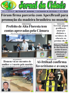 Edições do Jornal Edição 4573 14 de dezembro de 2023 Compartilhe: FacebookTwitterPinterestWhatsApp Edição 4573 Artigo anteriorCuiabá fica perto de acertar retorno de meia que está no futebol dos Estados UnidosPróximo artigoMENSAGEM FATAL: Homem vai ao encontro de mulher e é morto pelo marido Alta Floresta nublado enter location 21.5 ° C 21.5 ° 21.5 ° 99 % 0.9kmh 100 % seg 23 ° ter 29 ° qua 29 ° qui 29 ° sex 27 ° Últimas notícias QUASE TRAGÉDIA EM NOVA BANDEIRANTES: Tiro acidental atinge filha de homem que fazia manutenção em arma Polícia Amanda, linda Social Beatriz, se destaca em nossa coluna social com sorriso lindo Social INTEGRANTE DE FACÇÃO: Menor é detido com maconha, pasta base e cocaína em Alta Floresta Polícia Erisvania, uma excelente maquiadora Social Artigos relacionados Geral MODELO DE GESTÃO: Mais 15 escolas aprovam conversão para gestão cívico-militar e Rede Estadual passa a contar com 223 unidades em MT Laís Soares | Seduc-MT A Rede Estadual de Ensino de Mato Grosso agora passa a contar com 223 escolas... Polícia QUASE TRAGÉDIA EM NOVA BANDEIRANTES: Tiro acidental atinge filha de homem que fazia manutenção em arma Por Arão Leite Alta Floresta – A Polícia Civil apura um caso de disparo acidental que quase termina em... Social Amanda, linda Social Beatriz, se destaca em nossa coluna social com sorriso lindo