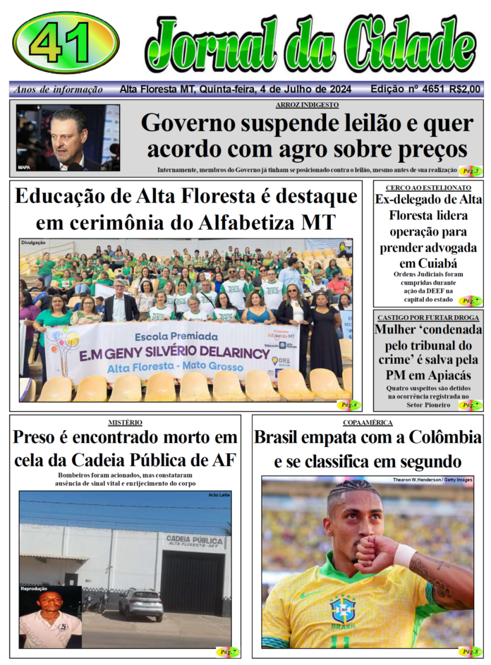 Edições do Jornal Edição 4651 4 de julho de 2024 Compartilhe: FacebookTwitterPinterestWhatsApp Edição 4651 Artigo anteriorARROZ INDIGESTO: Governo suspende leilão e quer acordo com agro sobre preçosPróximo artigoEurocopa: Diogo Costa vira herói nos pênaltis e classifica Portugal Alta Floresta nublado enter location 23.9 ° C 23.9 ° 23.9 ° 98 % 1.3kmh 97 % sáb 28 ° dom 26 ° seg 23 ° ter 27 ° qua 22 ° Últimas notícias Não será candidato Papo de Esquina Deve apoiar? Papo de Esquina Humor Oscilante Papo de Esquina Humor Oscilante – II Papo de Esquina EM VÁRZEA GRANDE: Polícia Civil localiza depósito de entorpecentes em mata Destaques Artigos relacionados Papo de Esquina Humor Oscilante – III A fala de Júlio Campos foi feita na quarta-feira (15), em resposta às críticas do prefeito de Cuiabá,... Papo de Esquina Não será candidato O ex-secretário de inovação do município de Alta Floresta, Emanoel Marcos e que também assumiu de forma relâmpago... Papo de Esquina Deve apoiar? Resta saber agora se Emanoel, com a afirmação de que não vai ser candidato nas eleições 2026, se... Papo de Esquina Humor Oscilante O deputado estadual Júlio Campos disse que o prefeito de Cuiabá, Abilio Brunini (PL), tem altos e baixos...
