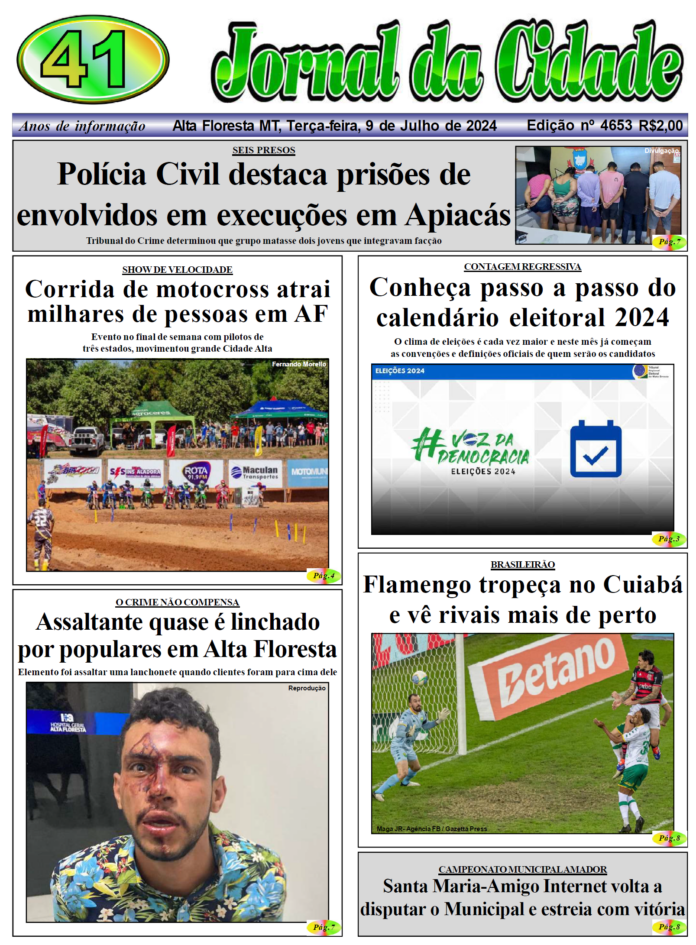 Edições do Jornal Edição 4653 8 de julho de 2024 Compartilhe: FacebookTwitterPinterestWhatsApp Loading... Taking too long? Reload document | Open in new tab Artigo anteriorCopa América Argentina elimina Equador nos pênaltis e vai a semifinalPróximo artigoElenice Silva comemorou nessa semana os 3 meses do seu caçula Odeir Junior. Alta Floresta nublado enter location 28.4 ° C 28.4 ° 28.4 ° 85 % 0.4kmh 95 % sex 27 ° sáb 28 ° dom 26 ° seg 23 ° ter 27 ° Últimas notícias Não será candidato Papo de Esquina Deve apoiar? Papo de Esquina Humor Oscilante Papo de Esquina Humor Oscilante – II Papo de Esquina EM VÁRZEA GRANDE: Polícia Civil localiza depósito de entorpecentes em mata Destaques Artigos relacionados Papo de Esquina Humor Oscilante – III A fala de Júlio Campos foi feita na quarta-feira (15), em resposta às críticas do prefeito de Cuiabá,... Papo de Esquina Não será candidato O ex-secretário de inovação do município de Alta Floresta, Emanoel Marcos e que também assumiu de forma relâmpago... Papo de Esquina Deve apoiar? Resta saber agora se Emanoel, com a afirmação de que não vai ser candidato nas eleições 2026, se... Papo de Esquina Humor Oscilante O deputado estadual Júlio Campos disse que o prefeito de Cuiabá, Abilio Brunini (PL), tem altos e baixos...
