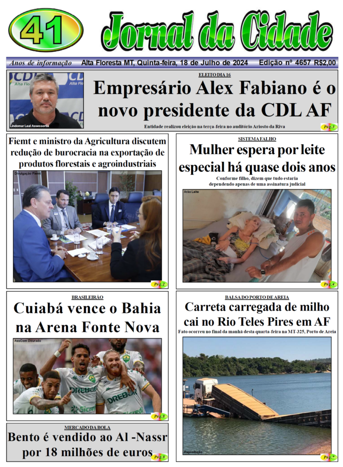 Edições do Jornal Edição 4657 17 de julho de 2024 Compartilhe: FacebookTwitterPinterestWhatsApp Loading... Taking too long? Reload document | Open in new tab Download [4.02 MB] Artigo anteriorTRÊS DÉCADAS DESTRUÍDAS: Incêndio em Shopping Popular choca MTPróximo artigoBuscar apoio em Brasília Alta Floresta nublado enter location 22.3 ° C 22.3 ° 22.3 ° 97 % 1kmh 100 % sáb 28 ° dom 25 ° seg 27 ° ter 28 ° qua 24 ° Últimas notícias QUASE TRAGÉDIA EM NOVA BANDEIRANTES: Tiro acidental atinge filha de homem que fazia manutenção em arma Polícia Amanda, linda Social Beatriz, se destaca em nossa coluna social com sorriso lindo Social INTEGRANTE DE FACÇÃO: Menor é detido com maconha, pasta base e cocaína em Alta Floresta Polícia Erisvania, uma excelente maquiadora Social Artigos relacionados Geral MODELO DE GESTÃO: Mais 15 escolas aprovam conversão para gestão cívico-militar e Rede Estadual passa a contar com 223 unidades em MT Laís Soares | Seduc-MT A Rede Estadual de Ensino de Mato Grosso agora passa a contar com 223 escolas... Polícia QUASE TRAGÉDIA EM NOVA BANDEIRANTES: Tiro acidental atinge filha de homem que fazia manutenção em arma Por Arão Leite Alta Floresta – A Polícia Civil apura um caso de disparo acidental que quase termina em... Social Amanda, linda Social Beatriz, se destaca em nossa coluna social com sorriso lindo
