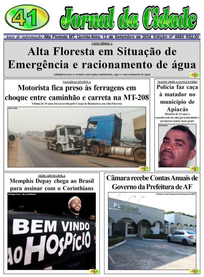 Edições do Jornal Edição 4680 12 de setembro de 2024 Compartilhe: FacebookTwitterPinterestWhatsApp Loading... Taking too long? Reload document | Open in new tab Artigo anteriorEmpurrar responsabilidadePróximo artigoNA FAIXA CONTÍNUA: Motorista fica preso às ferragens em choque entre caminhão e carreta Alta Floresta nublado enter location 22.3 ° C 22.3 ° 22.3 ° 97 % 1kmh 100 % sáb 28 ° dom 25 ° seg 27 ° ter 28 ° qua 24 ° Últimas notícias QUASE TRAGÉDIA EM NOVA BANDEIRANTES: Tiro acidental atinge filha de homem que fazia manutenção em arma Polícia Amanda, linda Social Beatriz, se destaca em nossa coluna social com sorriso lindo Social INTEGRANTE DE FACÇÃO: Menor é detido com maconha, pasta base e cocaína em Alta Floresta Polícia Erisvania, uma excelente maquiadora Social Artigos relacionados Geral MODELO DE GESTÃO: Mais 15 escolas aprovam conversão para gestão cívico-militar e Rede Estadual passa a contar com 223 unidades em MT Laís Soares | Seduc-MT A Rede Estadual de Ensino de Mato Grosso agora passa a contar com 223 escolas... Polícia QUASE TRAGÉDIA EM NOVA BANDEIRANTES: Tiro acidental atinge filha de homem que fazia manutenção em arma Por Arão Leite Alta Floresta – A Polícia Civil apura um caso de disparo acidental que quase termina em... Social Amanda, linda Social Beatriz, se destaca em nossa coluna social com sorriso lindo
