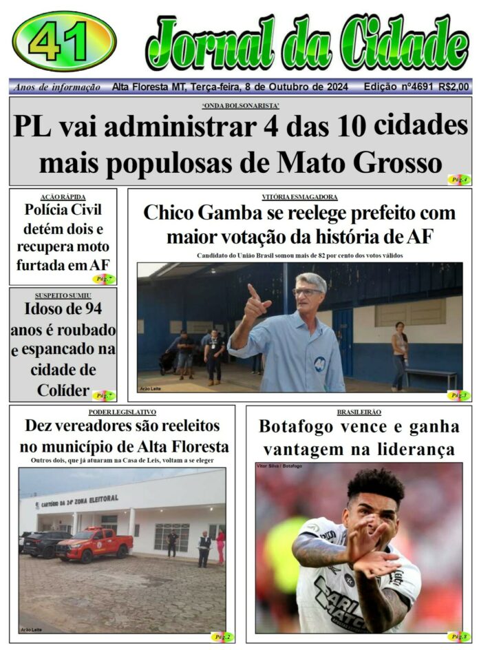 Edições do Jornal Edição 4691 8 de outubro de 2024 Compartilhe: FacebookTwitterPinterestWhatsApp Loading... Taking too long? Reload document | Open in new tab Artigo anteriorRUA PARAÍBA: Secretária tem casa invadida e furtada no Cidade AltaPróximo artigoEleito com recorde de votos Alta Floresta nublado enter location 22.2 ° C 22.2 ° 22.2 ° 96 % 1.1kmh 100 % qui 34 ° sex 29 ° sáb 28 ° dom 24 ° seg 22 ° Últimas notícias NORTÃO SEGURO: Três suspeitos de Carlinda são presos na cidade de Matupá Polícia DIREITOS DO CONSUMIDOR: Procon Estadual fiscaliza supermercados e lojas de produtos agropecuários em municípios do interior Geral SÉRIE D: Equipes de Mato Grosso não vencem pela segunda rodada Esporte ACOSTUMADO A ROUBAR: Ladrão é preso pela Polícia Civil após arrombar lojas em Apiacás Destaques Ataques na capital – II Papo de Esquina Artigos relacionados Destaques EM VÁRZEA GRANDE: Polícia Civil localiza depósito de entorpecentes em mata Assessoria | Polícia Civil-MT Uma grande quantidade de entorpecente que estava ocultada em uma área de mata, na região... Polícia NORTÃO SEGURO: Três suspeitos de Carlinda são presos na cidade de Matupá Por Arão Leite Alta Floresta – Um jovem de 23 anos, sua namorada, de 19 anos e mais uma... Geral DIREITOS DO CONSUMIDOR: Procon Estadual fiscaliza supermercados e lojas de produtos agropecuários em municípios do interior Solange Wollenhaupt Procon/Setasc-MT A Secretaria Adjunta de Proteção e Defesa dos Direitos do Consumidor (Procon-MT), órgão vinculado à Secretaria de... Esporte SÉRIE D: Equipes de Mato Grosso não vencem pela segunda rodada Gustavo Sampaio Jornal da Cidade A Série D de 2026 tem participação recorde das equipes de Mato Grosso, graças as...