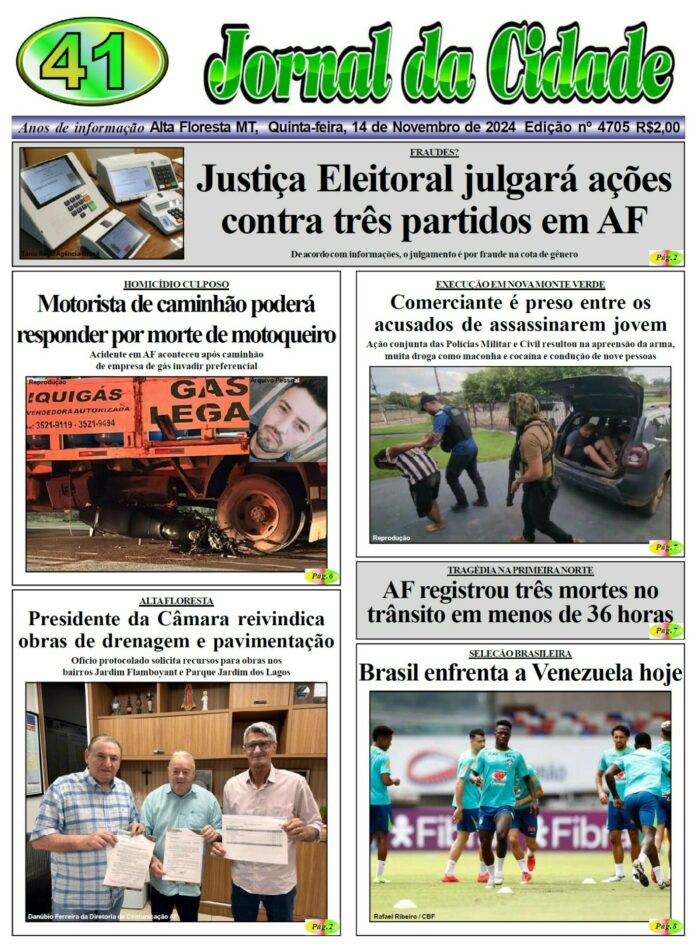 Edições do Jornal Edição 4705 14 de novembro de 2024 Compartilhe: FacebookTwitterPinterestWhatsApp Loading... Taking too long? Reload document | Open in new tab Artigo anteriorSinalização e segurançaPróximo artigoPediram fim da 6 x 1 Alta Floresta nuvens quebradas enter location 22.5 ° C 22.5 ° 22.5 ° 96 % 1.3kmh 69 % qui 34 ° sex 29 ° sáb 28 ° dom 28 ° seg 24 ° Últimas notícias HOMEM QUE CAIU DE EMBARCAÇÃO: Bombeiros cessam buscas por turista desaparecido no Rio Juruena Polícia SÉRIE B: Cuiabá vence a primeira e sai do Z-4 Esporte PEDIRÁ VOTOS PARA EX-GOVERNADOR: Alckmin será cabo eleitoral de Taques na disputa ao Senado e agenda visita a MT Geral ACIDENTE DE TRABALHO: Homem cai de andaime e vai parar na UTI em AF Polícia SEM CITAR NOMES: Pivetta volta acusar senador de ‘negociata’ com prefeituras Geral Artigos relacionados Destaques NA ONDA BOLSONARISTA: Mauro diz que Flávio Bolsonaro é herdeiro da direita e sinaliza apoio Pablo Rodrigo Gazeta Digital O ex-governador Mauro Mendes (União) classificou o senador Flávio Bolsonaro (PL-RJ), como o ‘herdeiro’ da direita... Polícia HOMEM QUE CAIU DE EMBARCAÇÃO: Bombeiros cessam buscas por turista desaparecido no Rio Juruena Por Arão Leite Alta Floresta – Foram cessadas por parte do Corpo de Bombeiros, as buscas ao turista Marcelo... Esporte SÉRIE B: Cuiabá vence a primeira e sai do Z-4 Gustavo Sampaio Jornal da Cidade O Dourado venceu sua primeira partida na Série B 2026. O triunfo veio contra o... Geral PEDIRÁ VOTOS PARA EX-GOVERNADOR: Alckmin será cabo eleitoral de Taques na disputa ao Senado e agenda visita a MT Fred Moraes Gazeta Digital Vice-presidente da República e uma das principais lideranças nacionais do Partido Socialista Brasileiro (PSB), Geraldo Alckmin...