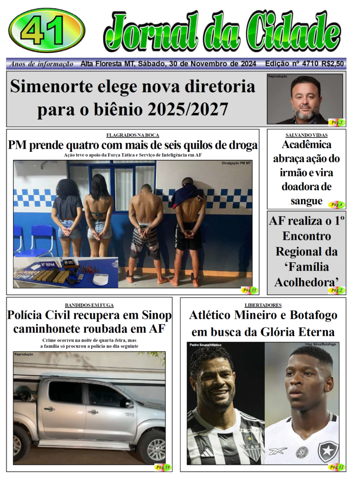 Edições do Jornal Edição 4710 30 de novembro de 2024 Compartilhe: FacebookTwitterPinterestWhatsApp Loading... Taking too long? Reload document | Open in new tab Artigo anteriorTalita Vitorino com sua beleza angelical e olhos marcantes, são sem duvidas o sinônimo da beleza.Próximo artigoBrasileirão: Centro-Oeste não terá representantes na Série A em 2025 Alta Floresta nublado enter location 22.3 ° C 22.3 ° 22.3 ° 97 % 1kmh 100 % sáb 28 ° dom 25 ° seg 27 ° ter 28 ° qua 24 ° Últimas notícias QUASE TRAGÉDIA EM NOVA BANDEIRANTES: Tiro acidental atinge filha de homem que fazia manutenção em arma Polícia Amanda, linda Social Beatriz, se destaca em nossa coluna social com sorriso lindo Social INTEGRANTE DE FACÇÃO: Menor é detido com maconha, pasta base e cocaína em Alta Floresta Polícia Erisvania, uma excelente maquiadora Social Artigos relacionados Geral MODELO DE GESTÃO: Mais 15 escolas aprovam conversão para gestão cívico-militar e Rede Estadual passa a contar com 223 unidades em MT Laís Soares | Seduc-MT A Rede Estadual de Ensino de Mato Grosso agora passa a contar com 223 escolas... Polícia QUASE TRAGÉDIA EM NOVA BANDEIRANTES: Tiro acidental atinge filha de homem que fazia manutenção em arma Por Arão Leite Alta Floresta – A Polícia Civil apura um caso de disparo acidental que quase termina em... Social Amanda, linda Social Beatriz, se destaca em nossa coluna social com sorriso lindo